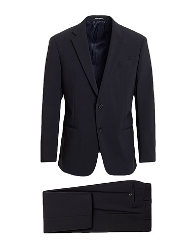 single-breasted suit, cool wool, plain colour, no appliqués, lapel collar, long sleeves, fully lined, button fastenings, zip fastening, multipockets, raw-cut hem, high waisted, belt loops, stretch, dry clean, do not bleach, do not tumble dry