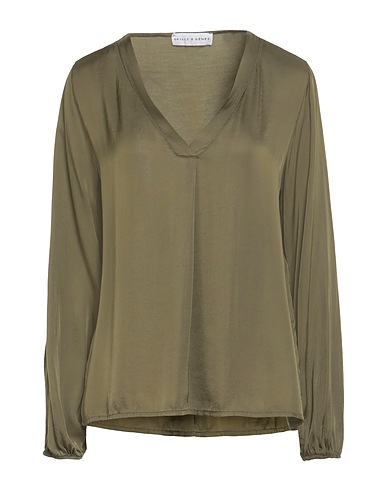 top, satin, plain colour, no appliqués, v-neck, long sleeves, elasticated cuffs, hand wash or dry clean, do not bleach, do not tumble dry