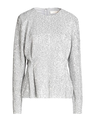 top, jersey, plain colour with appliqués, sequins, crewneck, long sleeves, partially lined, zip fastening, hook fastenings
