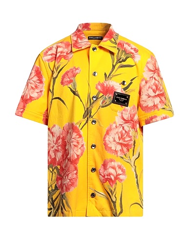 regular-fit shirt, gabardine, stretchy fabric, floral-print, brand logo, camp collar, short sleeves, button fastenings, one chest pocket, machine wash, do not bleach, do not tumble dry, this brand runs large