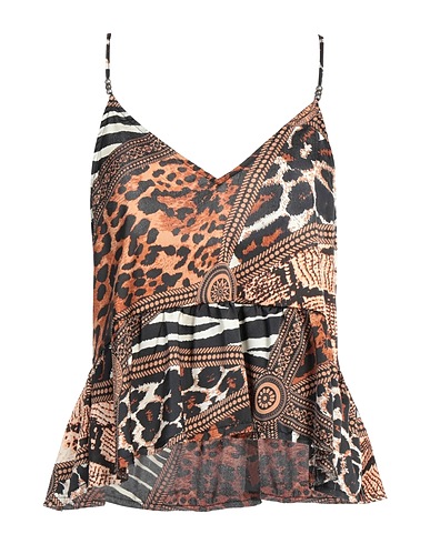 satin, no appliqués, leopard-print, deep neckline, sleeveless, no pockets, peplum top