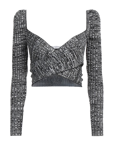 knitted, ribbed, mélange, lightweight knit, no appliqués, two-tone, deep neckline, long sleeves, no pockets, hand wash or dry clean, do not tumble dry, do not bleach, crop top