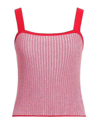 top, knitted, lightweight knit, two-tone, no appliqués, scoop neckline, sleeveless, machine wash, do not bleach, do not tumble dry