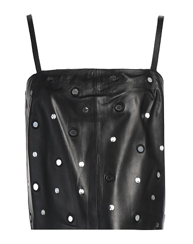 crop top, leather, plain colour with appliqués, embellished, square neckline, sleeveless, zip fastening, contains non-textile parts of animal origin, do not wash, do not bleach, do not tumble dry, do not iron