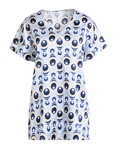 top, satin, stretchy fabric, multicolour, no appliqués, v-neck, short sleeves, side splits, hand wash or dry clean, do not bleach, do not tumble dry
