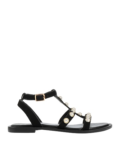gladiator sandals, leather, plain colour with appliqués, beads, leather lining, round toe, flat, leather sole, contains non-textile parts of animal origin