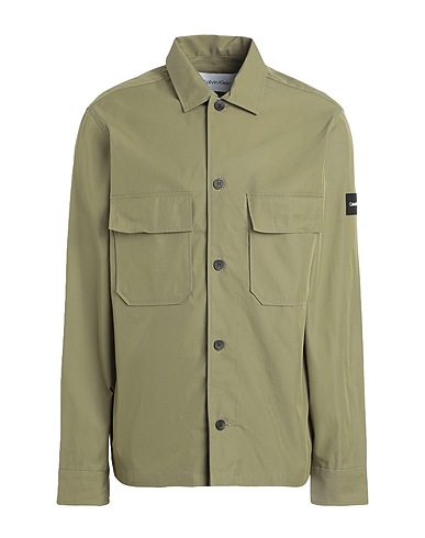 gabardine, brand logo, plain colour, classic collar, long sleeves, buttoned cuffs, button fastenings, two breast pockets, large sized, overshirt