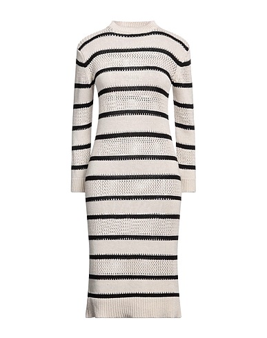 knitted, medium-weight knit, no appliqués, striped, crewneck, long sleeves, unlined, bodycon dress