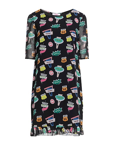 crepe, no appliqués, multicolour pattern, crewneck, short sleeves, fully lined, no pockets, dress