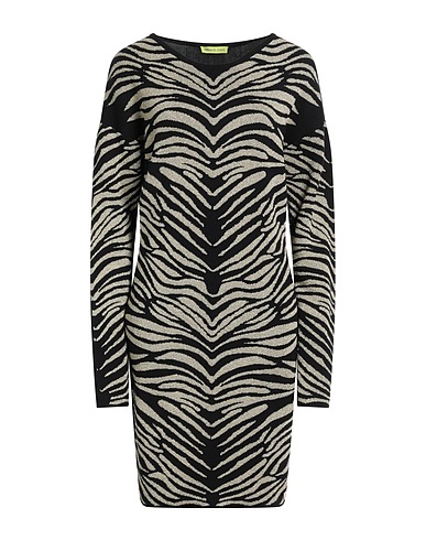 knitted, lamé, lightweight knit, no appliqués, two-tone, crewneck, long sleeves, unlined, dress