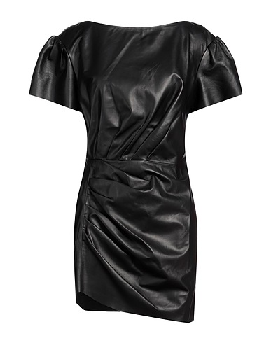 leather, gathered, plain colour, crewneck, short sleeves, unlined, zip fastening, no pockets, contains non-textile parts of animal origin, bodycon dress, small sized