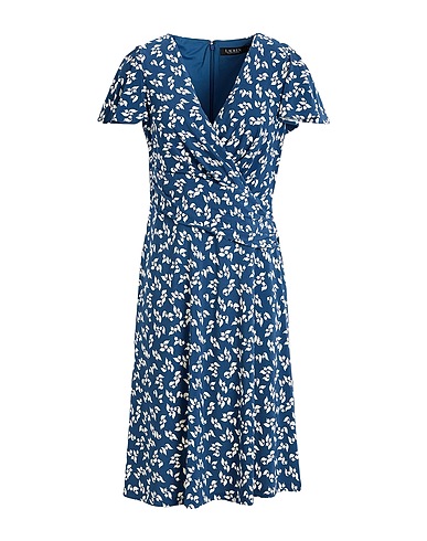 jersey, pleated, wrap-effect, two-tone, v-neck, short sleeves, cap sleeves, partially lined, hook fastenings, zip fastening, stretch, machine wash or dry clean, tumble dry, flared dress