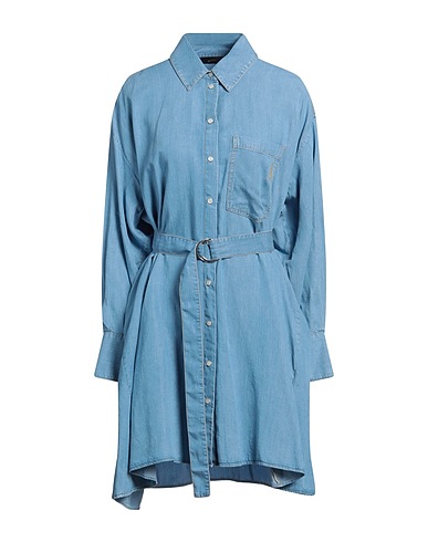 shirt dress, denim, belt, plain colour, classic collar, light wash, long sleeves, snap-fastening cuffs, snap fastenings, one chest pocket, hand wash, do not bleach, do not tumble dry
