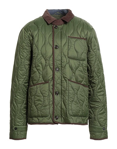quilted jacket, shell, quilted, corduroy trims, brand logo, plain colour with appliqués, turtleneck, long sleeves, fully lined, zip fastening, patch pockets, hand wash or dry clean, do not bleach, do not tumble dry