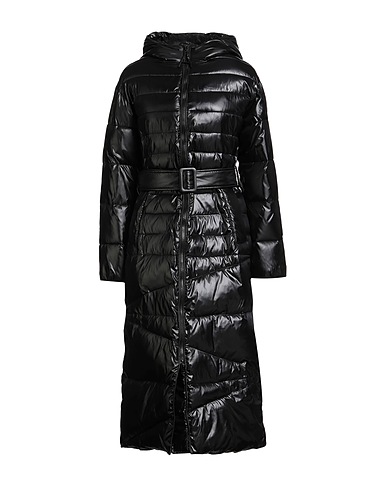 padded coat, shell, quilted, belt, plain colour, hooded, long sleeves, synthetic filling, heavyweight padding, zip fastening, welt pockets, hand wash, do not bleach, do not tumble dry, do not iron