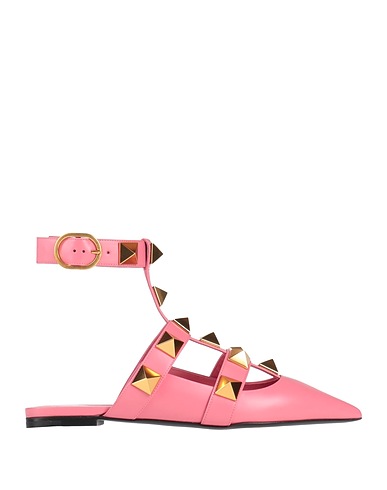 ballet flats, leather, plain colour with appliqués, studs, leather lining, buckle-fastening ankle strap, pointed toe, flat, leather sole, contains non-textile parts of animal origin