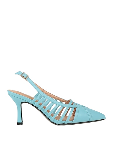 leather, no appliqués, solid colour, leather backing, buckle fastening, narrow toeline, spool heel, covered heel, rubber sole, contains non-textile parts of animal origin, slingback courts