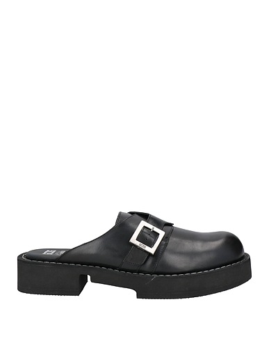 leather, brand logo, plain colour, leather lining, buckle fastening, round toe, square heel, rubber sole, contains non-textile parts of animal origin, mules