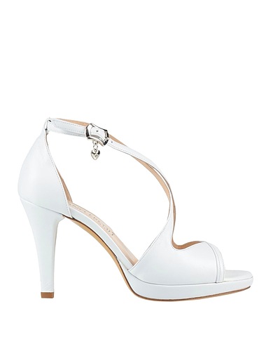 leather, platform, crystals, plain colour with appliqués, leather lining, buckle-fastening ankle strap, round toe, cone heel, covered heel, leather sole, contains non-textile parts of animal origin, ankle strap sandals