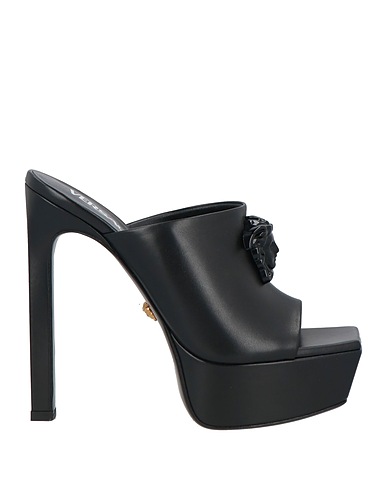 leather, brand logo, plain colour with appliqués, leather lining, square toe, stiletto heel, covered heel, leather sole, contains non-textile parts of animal origin, slide sandals