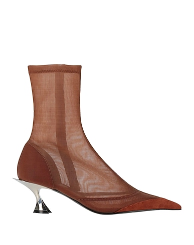 calf boots, mesh fabric, suede, no appliqués, plain colour, leather lining, zip fastening, pointed toe, geometric heel, leather/rubber sole, contains non-textile parts of animal origin