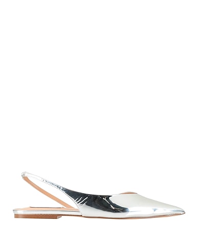 slingback ballet flats, coated fabric, metallic, plain colour, no appliqués, lined interior, elasticated inserts, pointed toe, flat, rubber sole
