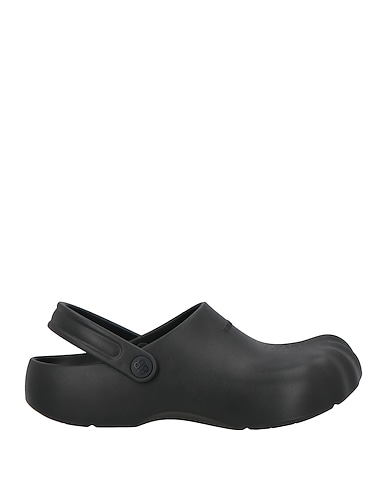 clogs, rubber, plain colour, brand logo, round toe, flat, rubber sole, rubber lining