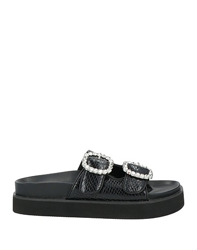 technical sandals, leather, snakeskin-print, crystals, leather lining, buckle fastening, round toe, flat, flatform, contains non-textile parts of animal origin