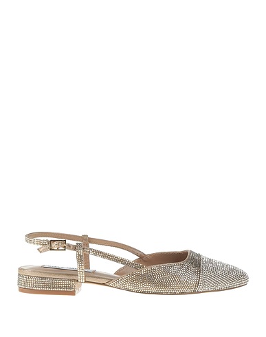 slingback ballet flats, coated fabric, two-tone, crystals, lined interior, buckle fastening, round toe, flat, rubber sole