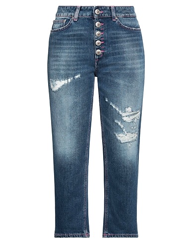 denim, faded, torn fabric, brand logo, plain colour, medium wash, high waisted, straight leg, regular fit, button closing, multipockets, model: koons, straight-leg model