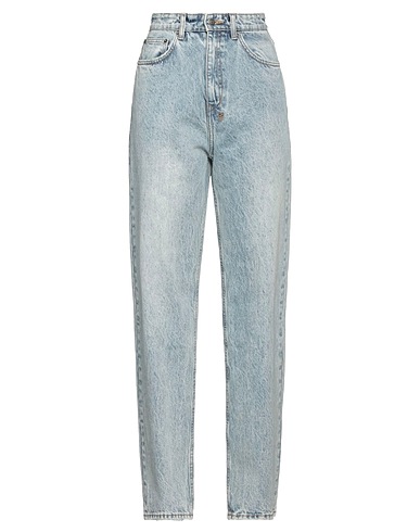 tapered jeans, denim, distressed, plain colour, embroidered, brand logo, medium wash, high waisted, belt loops, regular fit, zip fastening, pockets, machine wash, do not bleach, do not tumble dry