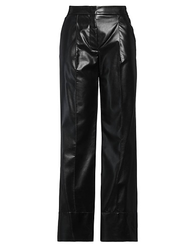coated fabric, no appliqués, plain colour, high waisted, regular fit, zip fastening, hook fastenings, multipockets, machine wash or dry clean, tumble dry, do not bleach, do not iron, wide-leg trousers