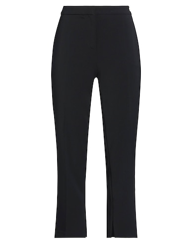 straight-leg trousers, crepe, plain colour, brand logo, mid rise, regular fit, zip fastening, hook fastenings, side slit hemline, multipockets, stretch, dry clean, do not bleach, do not tumble dry, cropped