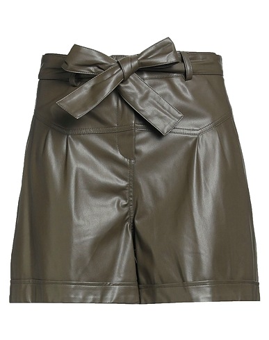 shorts, coated fabric, plain colour, brand logo, high waisted, belted waistline, zip fastening, button fastenings, multipockets, hand wash or dry clean, do not bleach, do not tumble dry