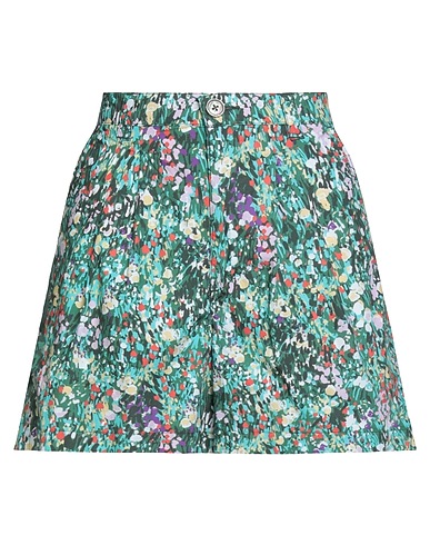 shorts, woven, floral-print, brand logo, darts, high waisted, belt loops, 1 button, zip fastening, multipockets, machine wash, tumble dry, do not iron