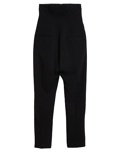 tailored trousers, crepe, plain colour, no appliqués, low-crotch, tapered leg, regular fit, zip fastening, hook fastenings, welt pockets, stretch, dry clean, do not bleach, do not tumble dry, this brand runs large