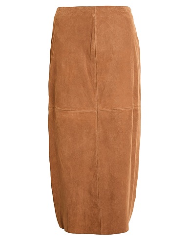 pencil skirt, suede, plain colour, brand logo, partially lined, zip fastening, rear slit, do not wash, do not bleach, do not tumble dry, do not iron, contains non-textile parts of animal origin
