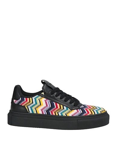 low-top trainers, knitted, coated fabric, signature print, brand logo, lined interior, lace-up, round toe, rubber sole