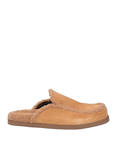 clogs, suede, plush fabric, plain colour, no appliqués, round toe, flat, rubber sole, plush lining, contains non-textile parts of animal origin
