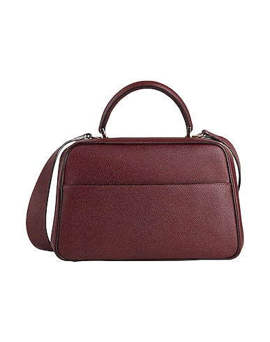bowler bag, pebbled-leather, plain colour, brand logo, zip fastening, leather lining, internal mobile pouch, external pocket, bag handle, detachable shoulder strap, leather straps, feet at base, medium size, contains non-textile parts of animal origin