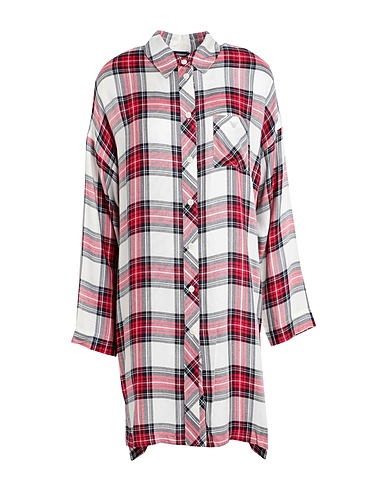 plain weave, brand logo, crystals, tartan pattern, classic collar, long sleeves, button closing, single chest pocket, side slit hemline, nightdress