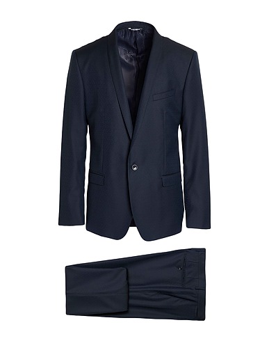 single-breasted suit, cool wool, plain colour, no appliqués, lapel collar, long sleeves, fully lined, button fastenings, flap pockets, rear slit, low waisted, dry clean, do not bleach, do not tumble dry
