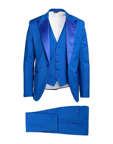 single-breasted suit, cool wool, stretchy fabric, plain colour, brooch, satin trims, lapel collar, long sleeves, fully lined, 1 button, one chest pocket, welt pockets, dual back vents, mid rise, belt loops, 3-piece set, dry clean, do not bleach, do not tumble dry