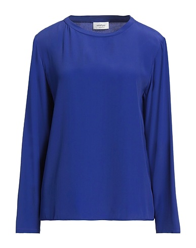 топ, креп, одноцветное изделие, логотип бренда, круглая горловина, длинные рукава