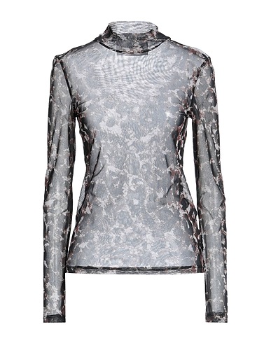 футболка с рисунком, тюль, разноцветный узор, логотип бренда, высокий воротник, длинные рукава
