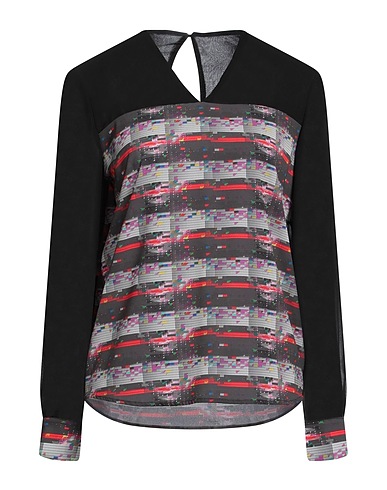 топ, креп, разноцветный узор, без аппликаций, классический воротник, длинные рукава, 1 пуговица, стрейч, этот бренд предлагает большемерные модели