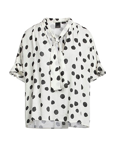 блузка с бантом, креп, жаккардовая ткань, логотип бренда, в горошек, воротник с бантом, короткие рукава