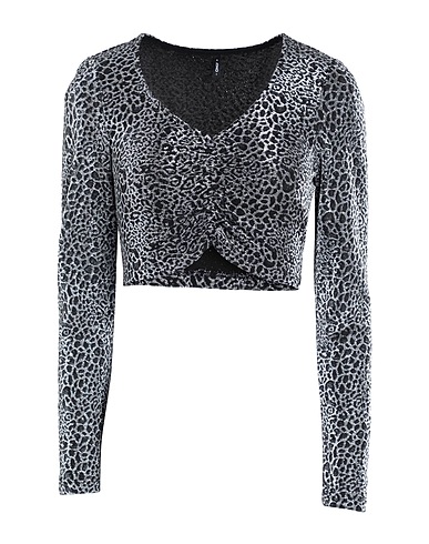 кроп-топ, джерси, леопардовый рисунок, сборки, v-образный вырез, длинные рукава