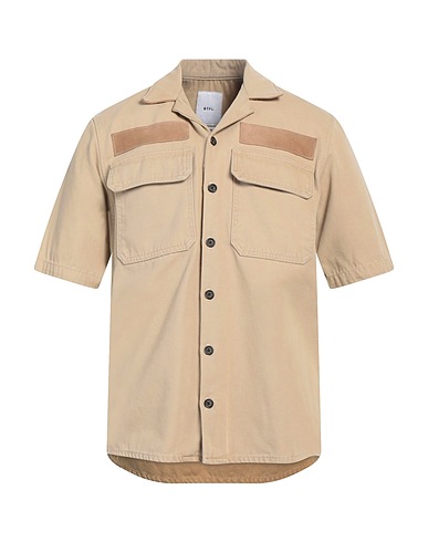 рубашка в стиле сафари, тканое полотно, одноцветное изделие, с декором, воротник с лацканами, короткие рукава, застёжка в виде пуговиц, двойной кармашек