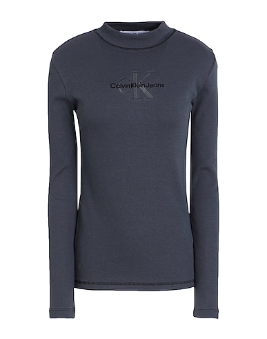 джерси, узор "в рубчик", вышивка, логотип бренда, одноцветное изделие, ложный воротник, длинные рукава, стрейч, футболка